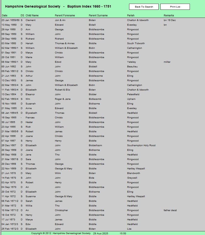 The search for the Parish name and which Ward to help find the correct Register of People eligible to vote, aka Register of Voters, aka Electoral Roll.