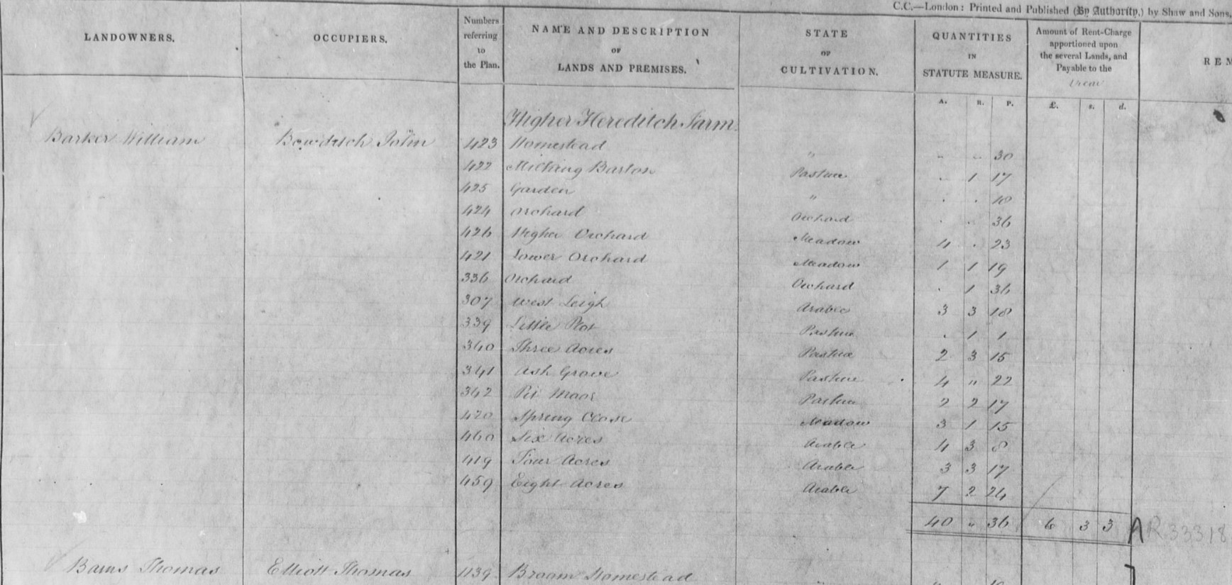 There is no Estate or Lands mentioned in the Will so presumably he was a tenant and not a landowner.