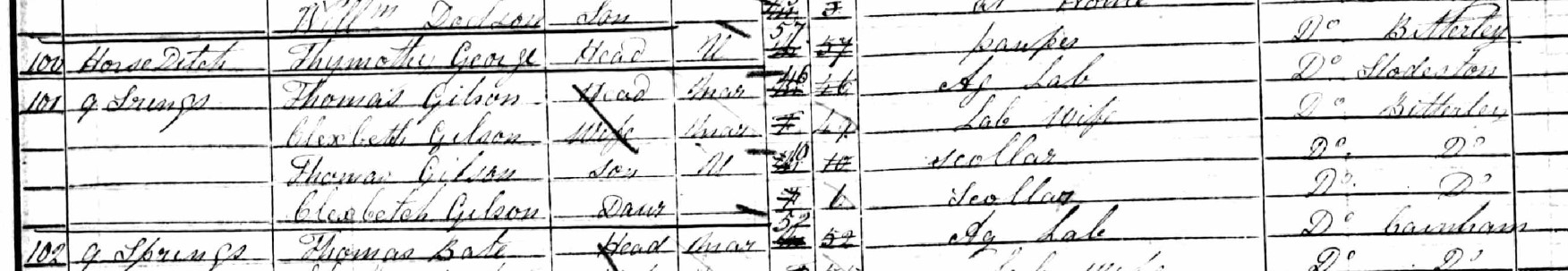 The 1841 Census for Thomas Gilson was more difficult to locate as he appears to be working away from home at the time on the census.
