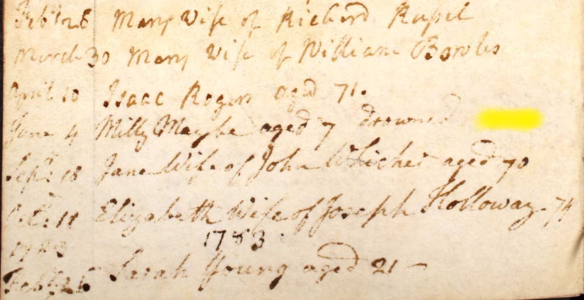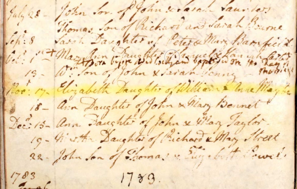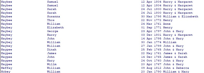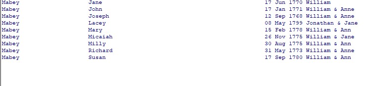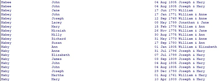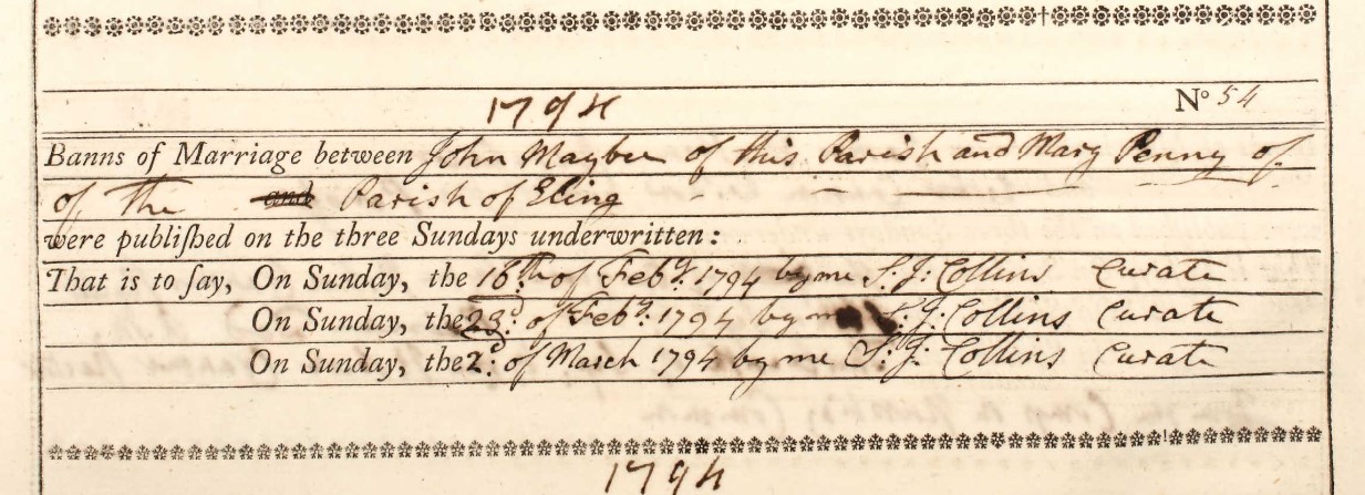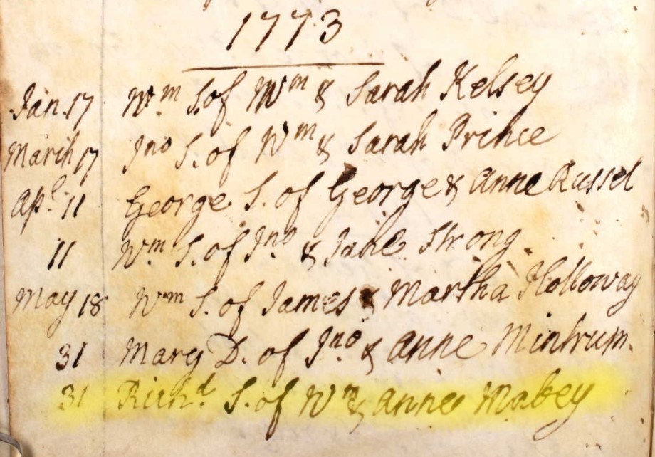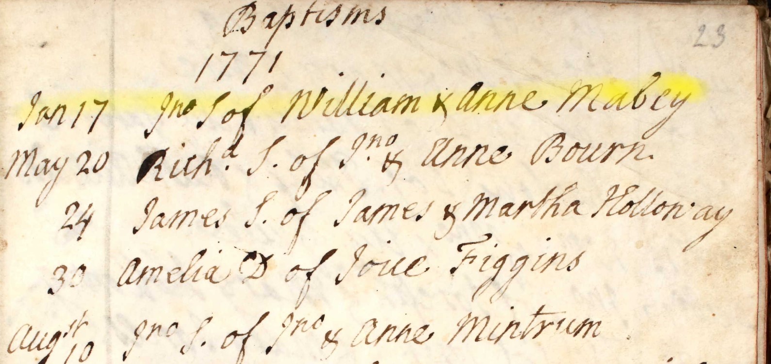 | John Mabey | 17th January 1771 | 3rd March 1794 | (Marriage 25 y, 1 m, 29 d) | |||