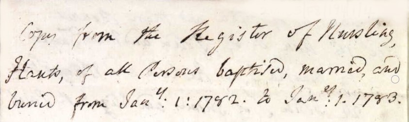 A Registry of Baptisms, Marriages, & Burials for the Parish of Nutshalling, alias, Nursling.