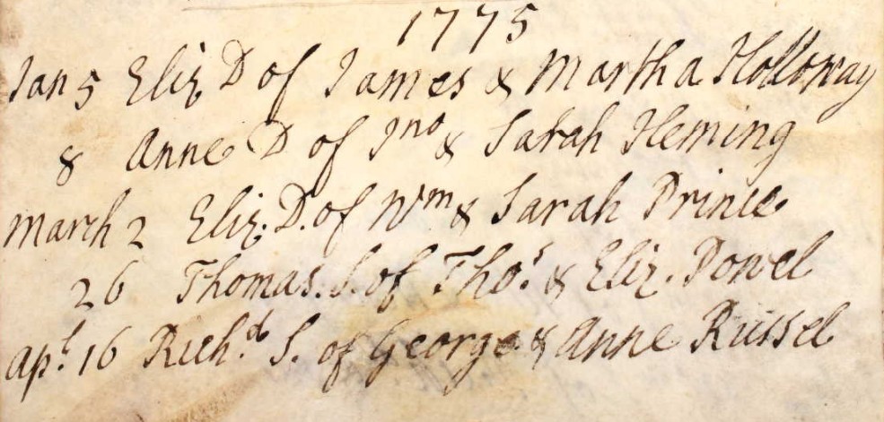 NB Thomas Richards having declared; that his Daughter's real name, who was registered Jany: 12. 1763, is Mary and not Elizabeth as set Down by mistake of the then Rector, it was on Sunday Octr. 29. 1780 altered and rectified, agreeably to this Declaration and the Testimony Blanch Pitman, who had knowledge of the Fact.