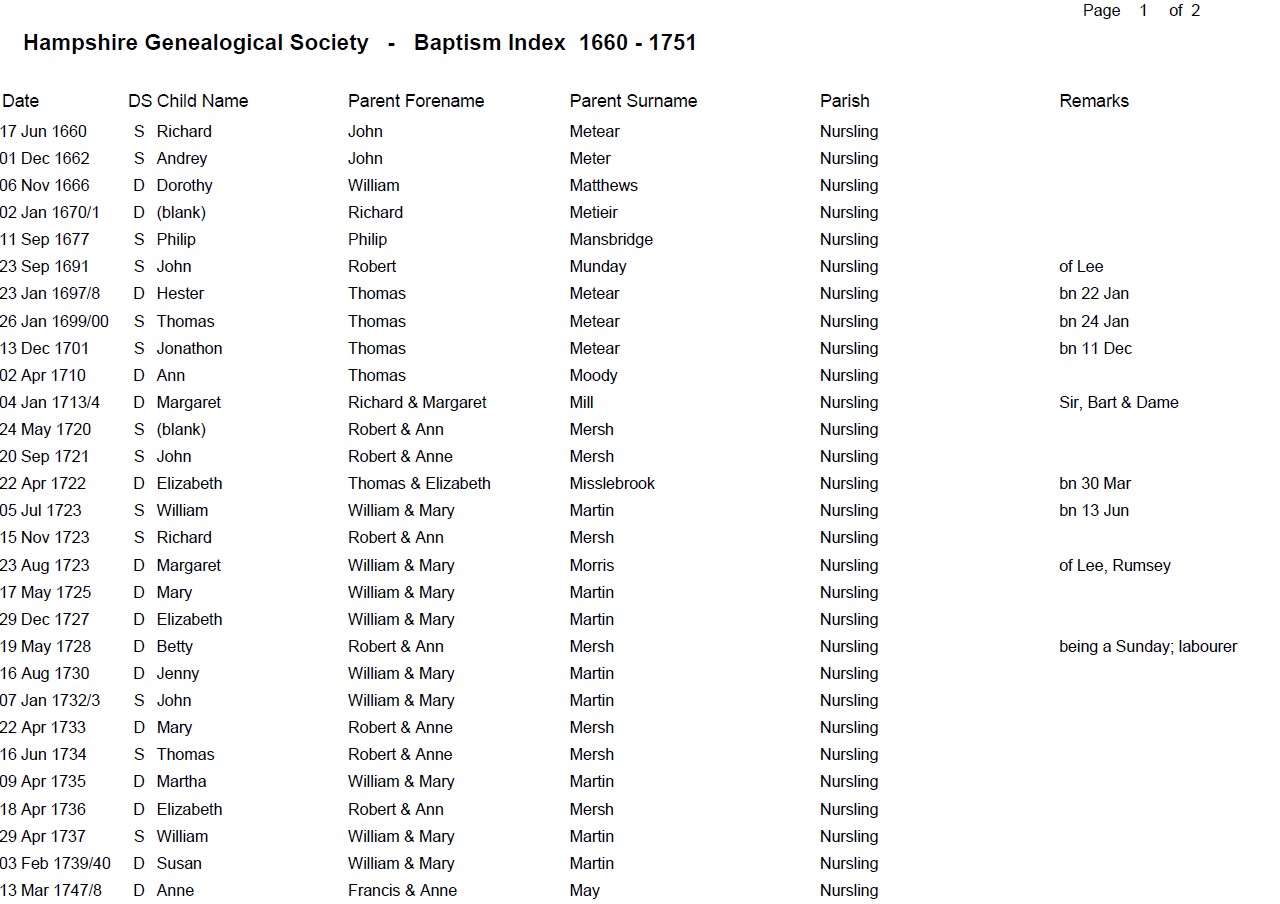 Birth BEF. 17 JAN 1771 • Nursling, Hampshire, England. Baptised 17 Jan 1771.
