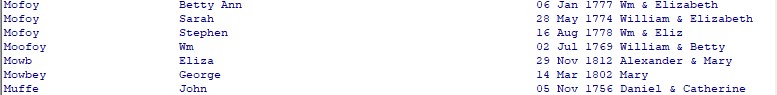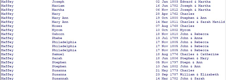 | Name | Birth | Baptism | Marriage | Death | Interval between children | Mothers age at birth |