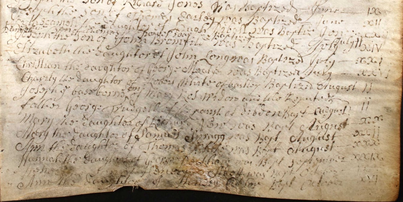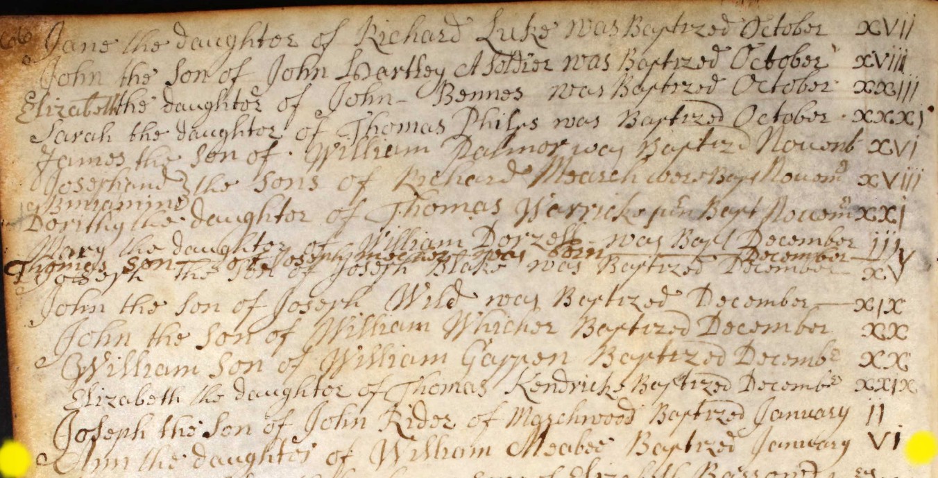 Above is not from the Parish Register but is an extract from the Probate copy of Robert Bourne's Will.