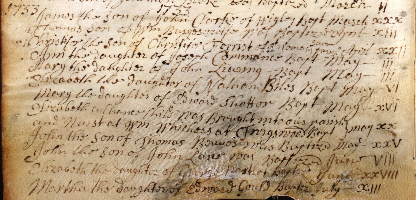 The Revd Mr Robert Bourne A.M. was inducted into the Rectory of Nutshaling alias Nursling the Fourteenth of November 1733.