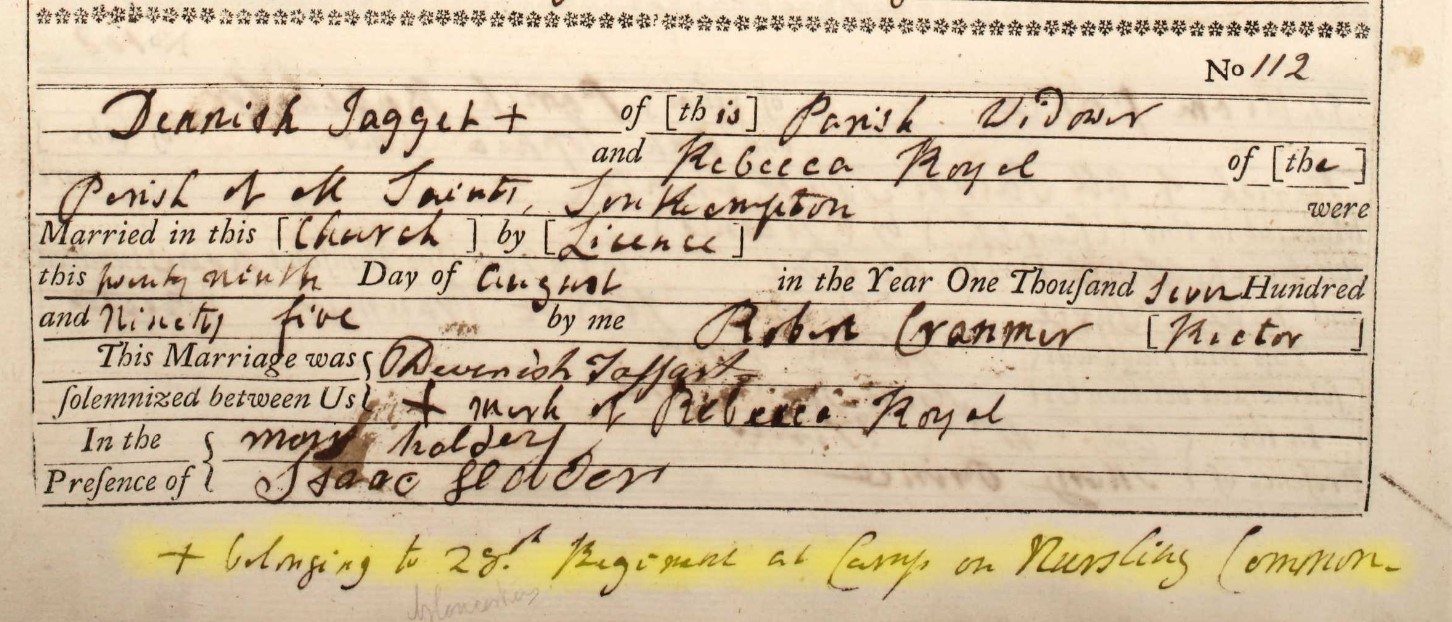 N.B. The Baptism of Richard King was omitted, the Service having been performed privately and the Clerk not present, so that it was not in the Minutes which the Rector copied and entered in the Register, but it was afterwards inserted by the Curate.