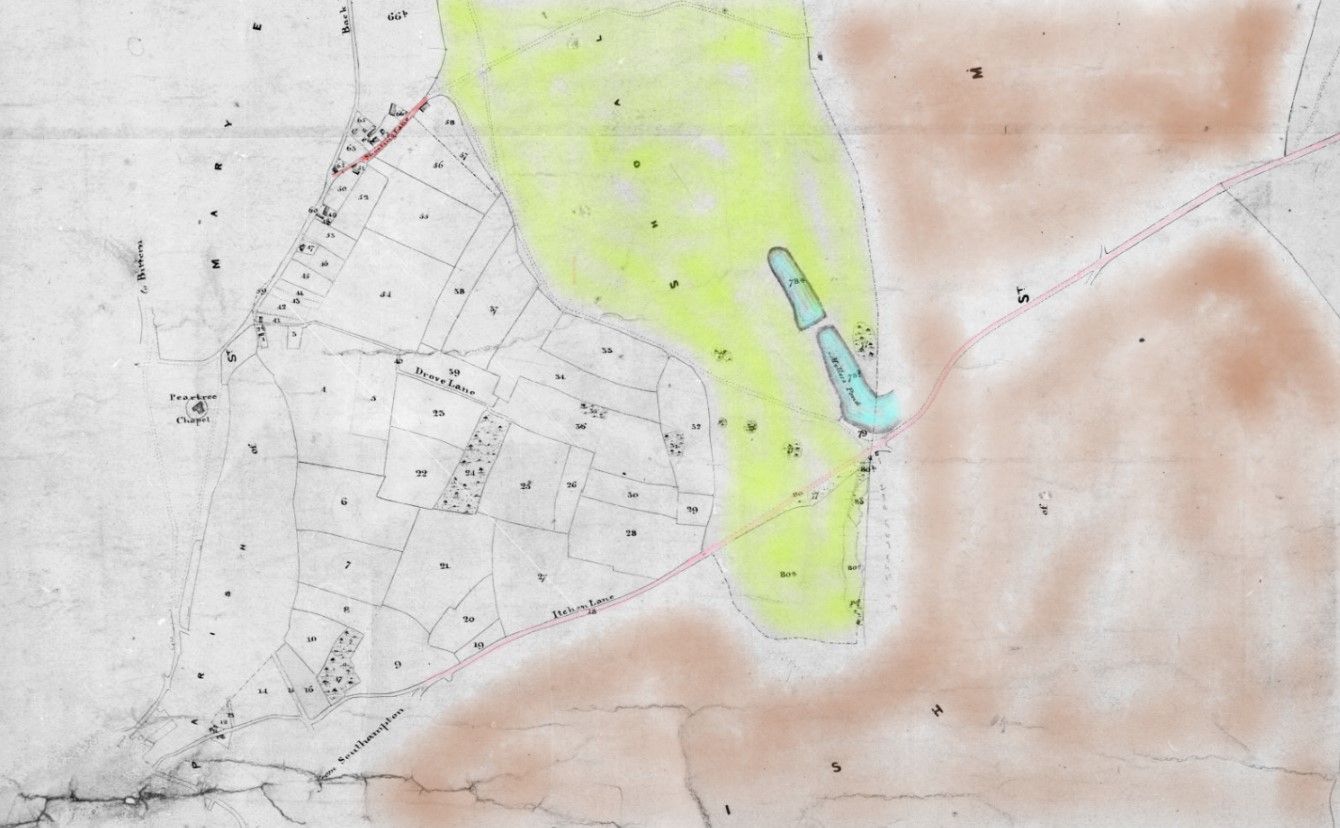 However, the extent of Robert Minchin's landholings, as occupier are shown on the green wash part of the Tithe Map of Bishop's Sutton below.