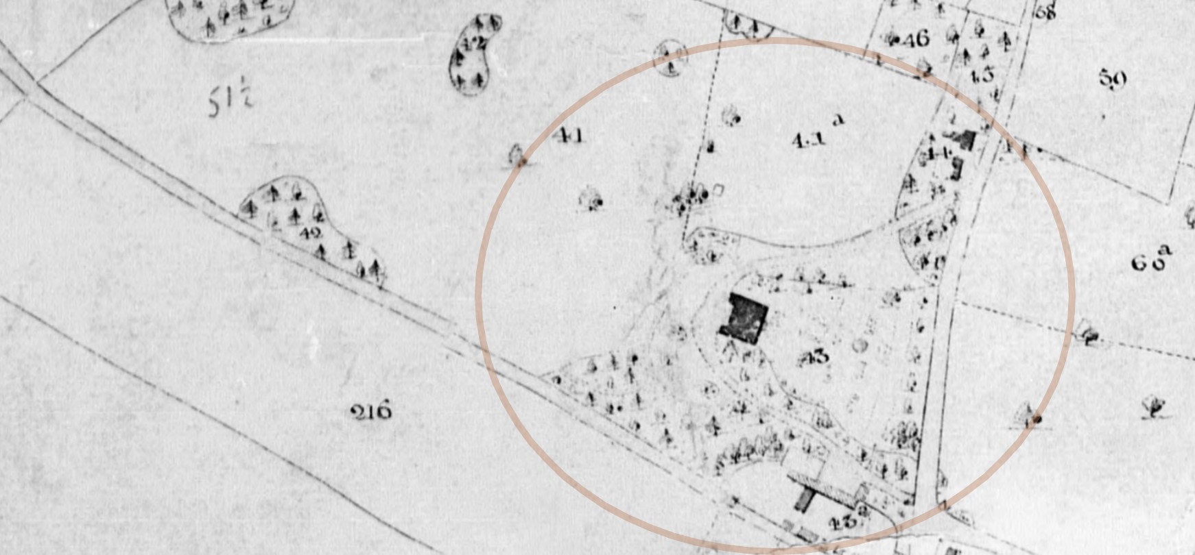 A Google map satellite image with Brown's Copse Cemetery, Roeux, tagged and Greenland Hill shown on the 1917 map added in red text.