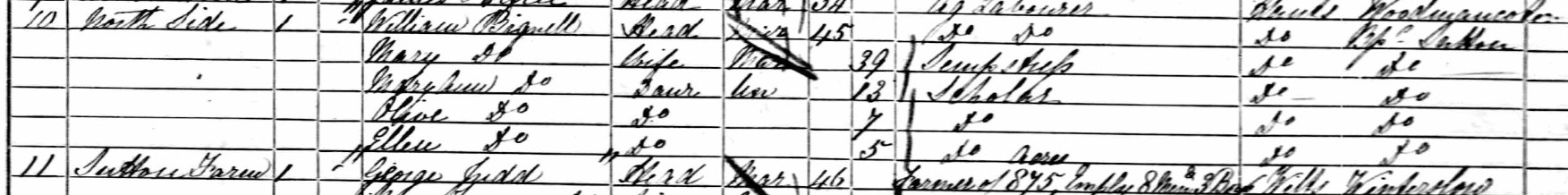 | William Bignell | X | X | X | 25 | 35 | 45 | 53/55 | ^^ | ^^ | X | Labourer / Agr Labourer | |||