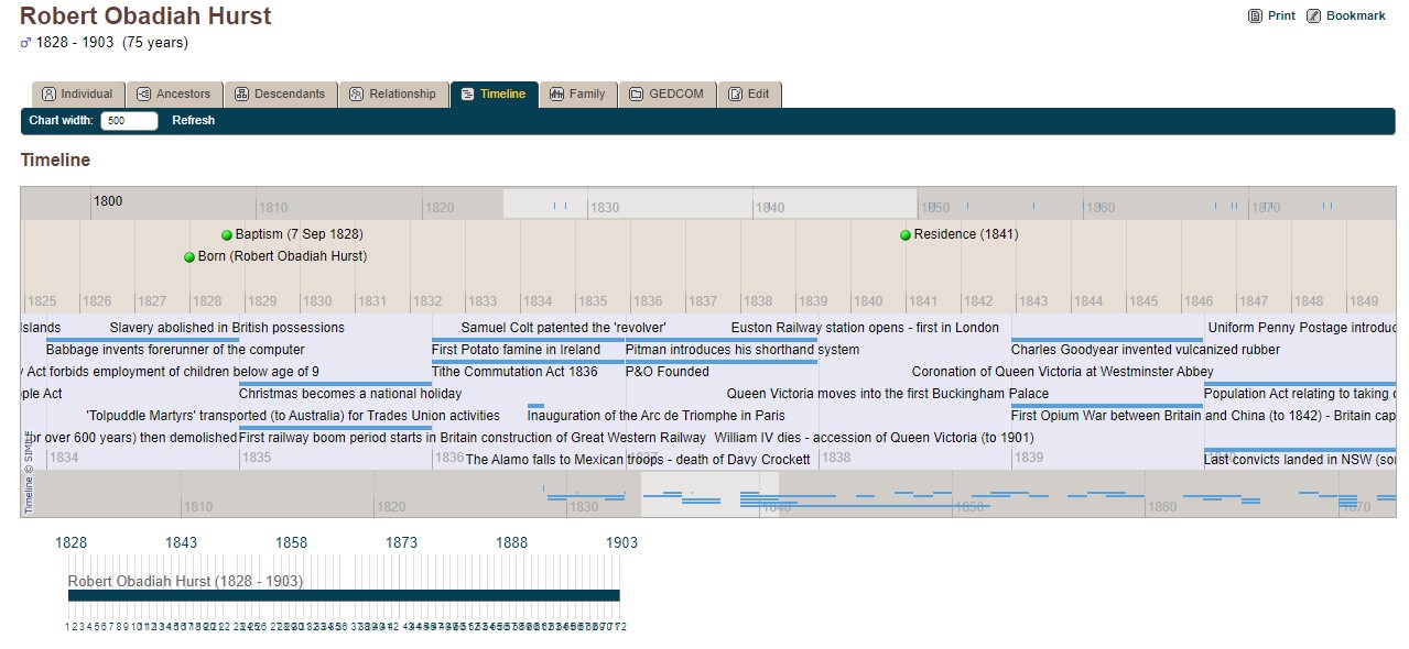 To get some sense of the period into which Obadiah was born into, and lived through, we could look at a timeline from his record on TNG.