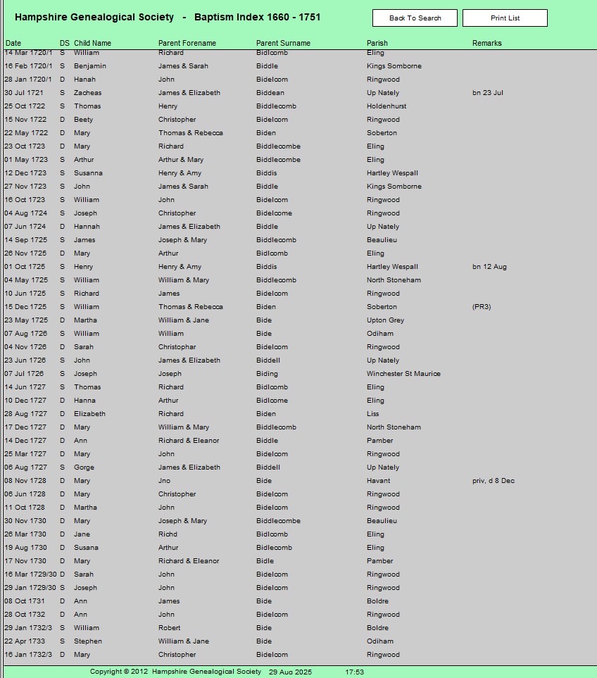 | Baptism year date | 7 September 1828 | Record set | Hampshire Baptisms | |