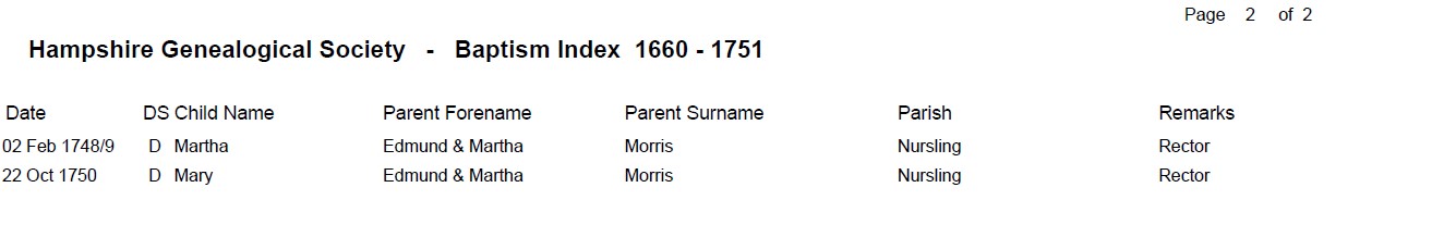 Birth BEF. 17 JAN 1771 • Nursling, Hampshire, England. Baptised 17 Jan 1771.