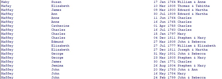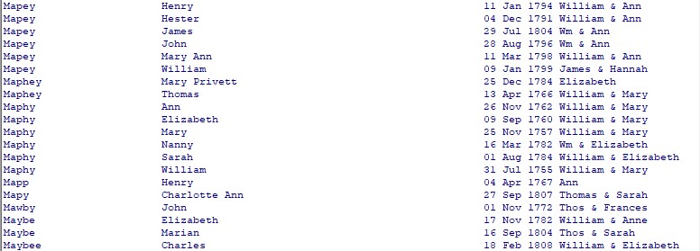 | John Mabey | 17th January 1771 | 3rd March 1794 | (Marriage 25 y, 1 m, 29 d) | |||