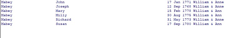 | William Mabey | Anne Long | James Penny | Ann Eldridge | |||||||