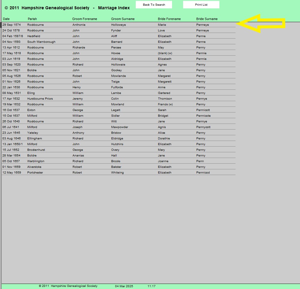 Hampshire | England | Parish of Eling, Tything of Marchwood, Marchwood | Daughter |